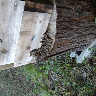 逃げられたのならしょうがないと一週間後にスムシにやられる前に巣を撤去しようとしたら、まだ多少ですがミツバチが入っていました。(逃げ遅れ?蜜を取りに来てる?)