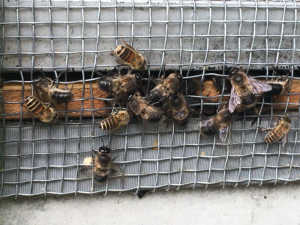 ④内検すると、蜂の動きが足早で、忙しくウロウロ歩いている蜂が居る。または、群全体がざわついていて、落ち着きがない。