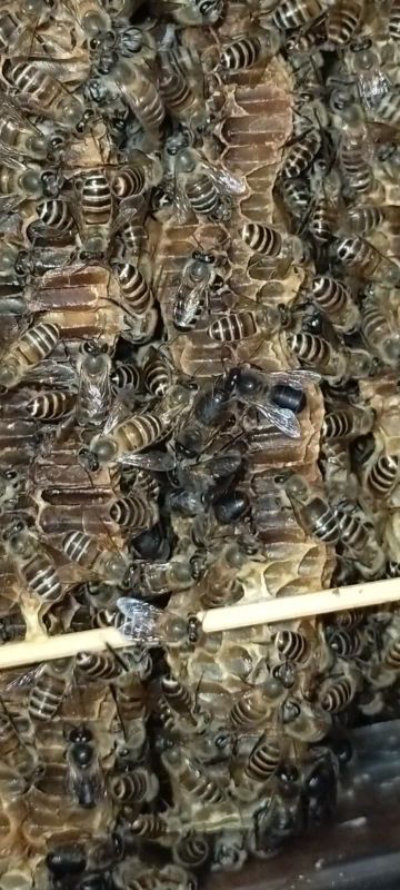 私の経験上、通常サイズの雄蜂と小ぶりの雄蜂がいるのであれば、女王の不調を疑いますが…今回の場合、巢板を切り取られたのですよね⁈