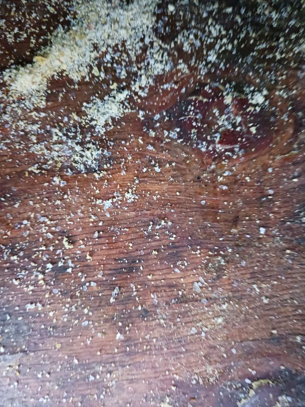 ◆底板のスムシの糞の落ち具合から、巣食って居そうな面はどちら側か予測する。
