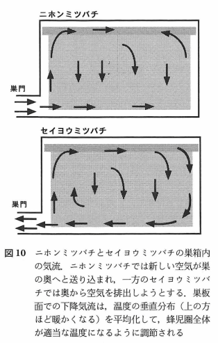そうすると巣箱内の湿気が少なく放っておいても、天井で結露して雫が落ちてくる様な事態にならないんじゃないかと思ってます。蜂はそれを嫌って敢えて、自然な対流と逆向きの気流を旋風によって起こすのかなぁと。