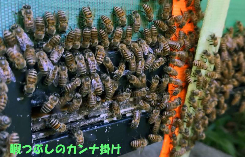日本蜜蜂の盗密です 網で封鎖し数回開けこの盗密蜂を全て巣箱内に入れます
