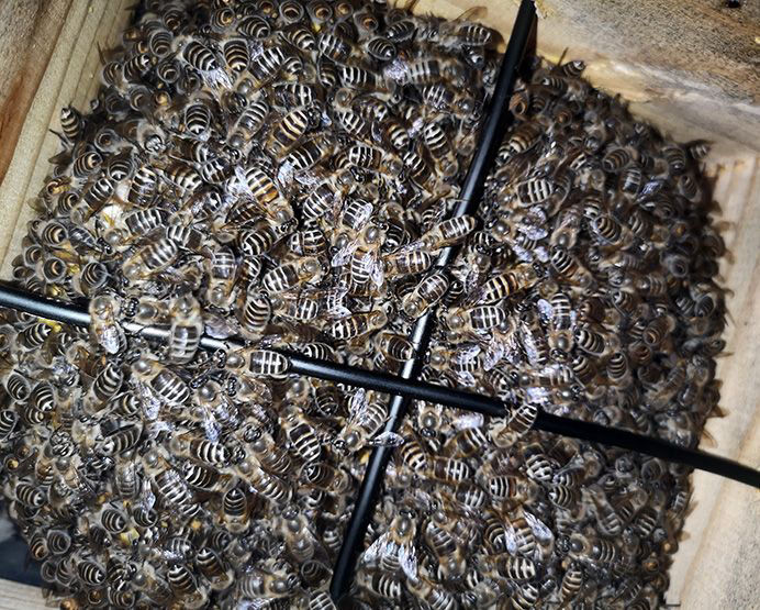 2023年は1群捕獲しましたが冬を越せませんでした。昨年2024年はアカリンダニ対策をした甲斐があってか2群冬を越しました。 今年は5群に増えました。
