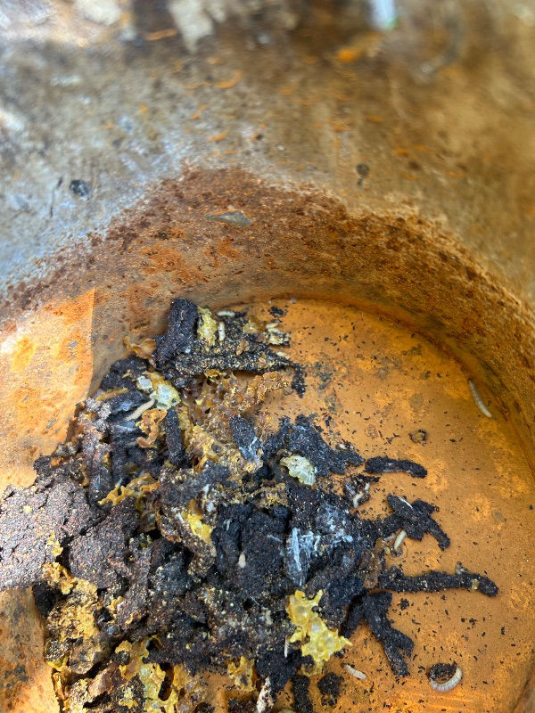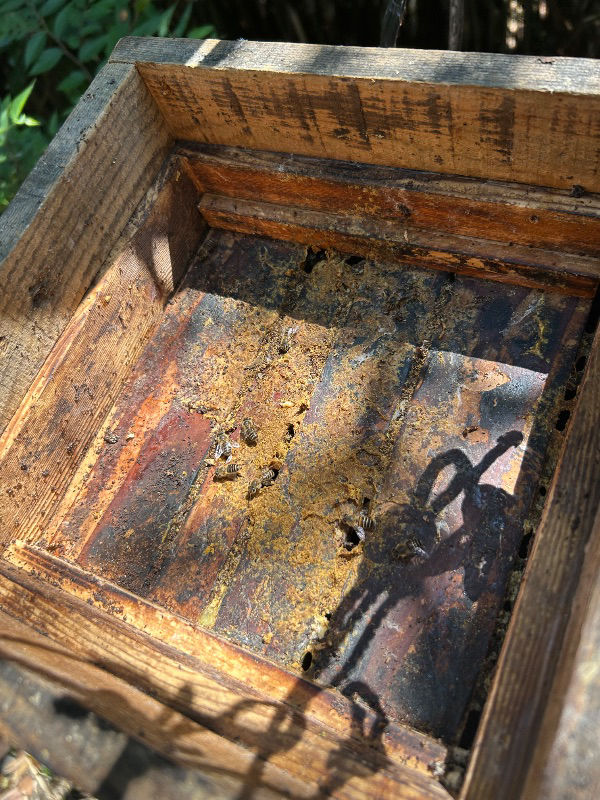 早朝に 天蓋を開け スノコを除いたら、スムシの子供が 沸き始めていました。 今朝はその焼却処分までとします。ナム? 間も無く 病院🏥に行きます。