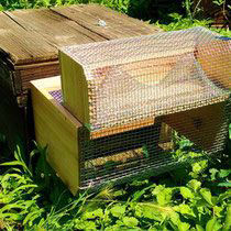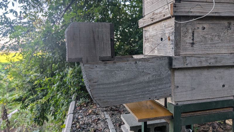 巣箱ではなくて巣門から遠い所へ捕獲箱を置けば、ミツバチはオオスズメバチが入っている籠(捕獲箱)を怖がらないのではないかと思いました。