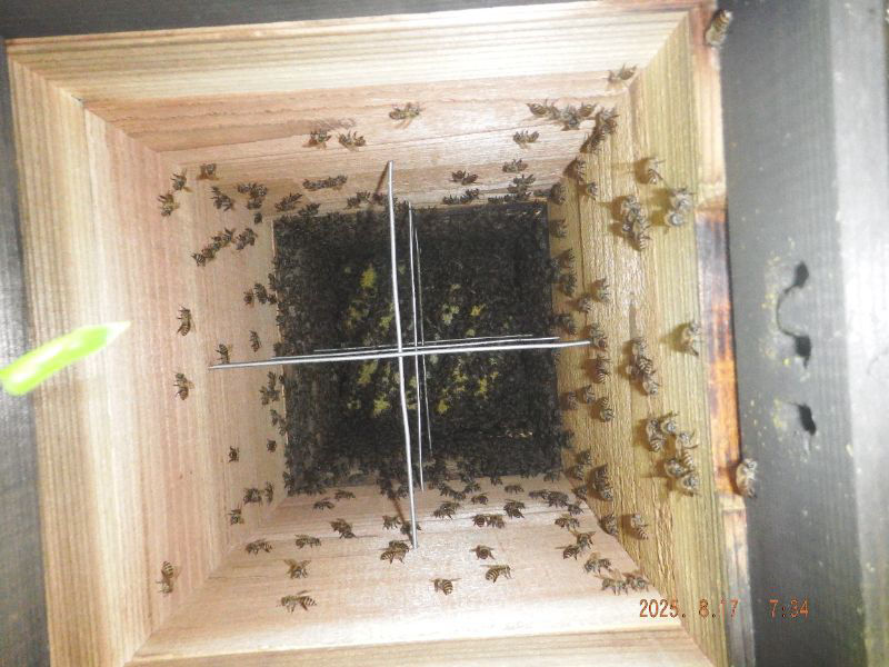 日本ミツバチは森林組合の友人から2012年巣蜜をいただいたのと山荘の薪小屋に日本ミツバチがたくさん来ていたので何か自分でも知らないうちにやっていました。宜しくお...
