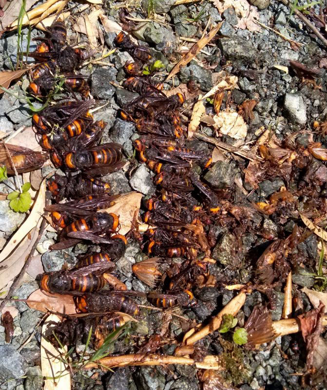 来年へオオスズメバチの女王バチらを送り出す必要がある時に二ホンミツバチにも攻めてくると考えています。