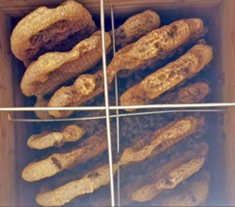 そして、以前の相談の時と比べても、巣板に新しい営巣部分が見当たりませんね。やはり、新しい蜜蜂は生まれていないのではないかと思います。