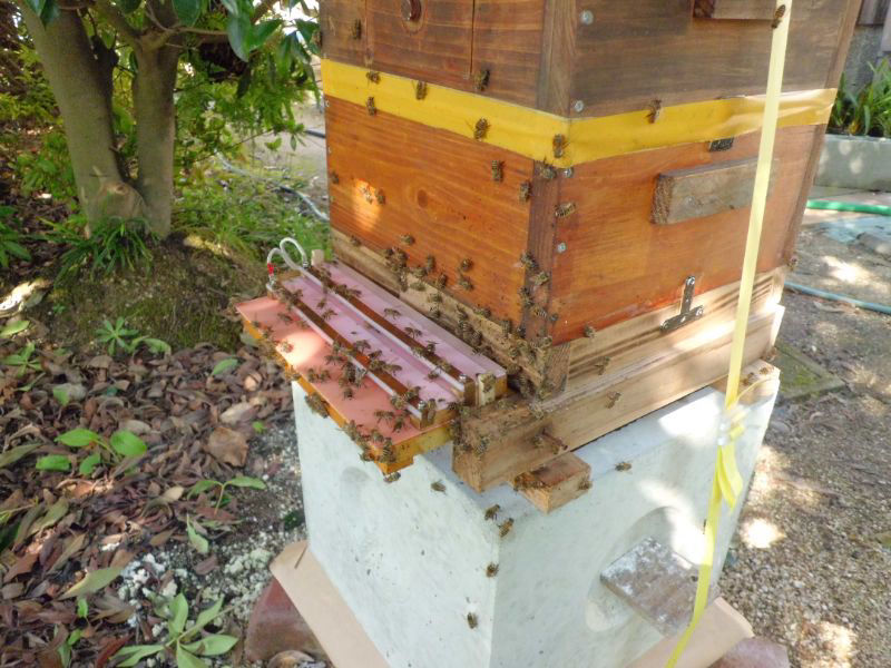 ミツバチの一番の敵はオオスズメバチで巣門隙間を4~5mmにしても入口でウロウロされたらミツバチは出られません。(4面巣門枠という方法も有りますが・・・)