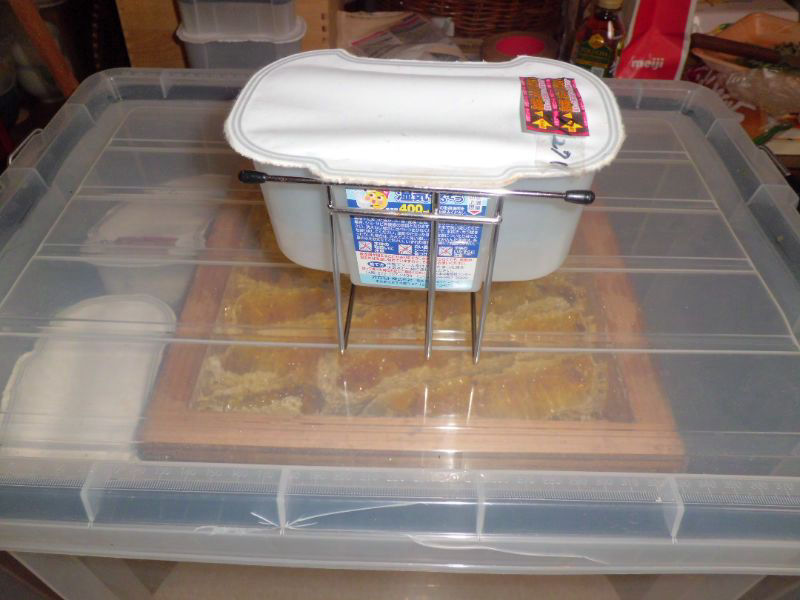 うちの蜂蜜、brix81%以上に糖度を上げていますが、夏の間、酵母の働きで容器の上に白い泡が浮いてきます。説明はしていますが、泡立っている蜂蜜は、人にあげるのをためらいます。