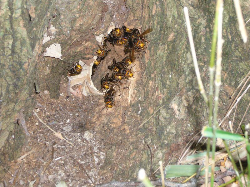 栗生産農家さんよりスズメバチが栗の木の根っこに巣を作ってる言う事で駆除依頼が有りました