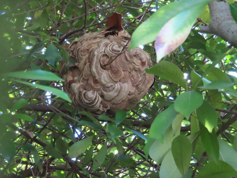巣内の蜂は全滅してますが、まだ駆除を逃れた蜂が戻って来ておりあまり近づけない状態です
