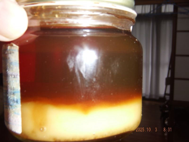 aoiさん ~~~ヾ(^∇^)おはよー♪ございます。メイラード反応とは、普通は、熱を加えて色が変わる現象ですが、自然でも10年以上経つと、メイラード反応していますね。下に12年前のカラスザンショウの蜂蜜を張りますね。昔は発酵した場合にはタッパー内で零れるのが、済むように群別に入れていましたね。