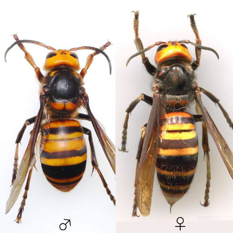 私が言いたかったのは刺す恐れの無い状態のオオスズメバチにすれば雌雄を検査する事は用意ですが、飛んでいるだけとか静止画でも角度によっては形状を見誤る可能性があると言う事です。