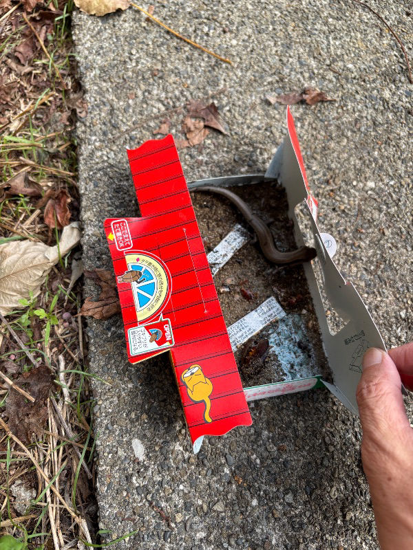 またトカゲなどもよくかかります。この時はまだ元気だったので、水を撒いてあげたら自力で脱出しました。