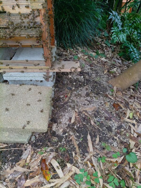 tototoさん こんばんは。地面に居る蜂も動いて居るのですよね? オオスズメバチが複数で襲来した合間だと思います。蜂娘達が居る所は、大スズメ群が停まったり、餌場としてマークするフェロモンを擦り付けたか、もっと攻撃的に襲ったとしたら、毒液と一緒に攻撃警戒フェロモンを噴射したのかも知れません。