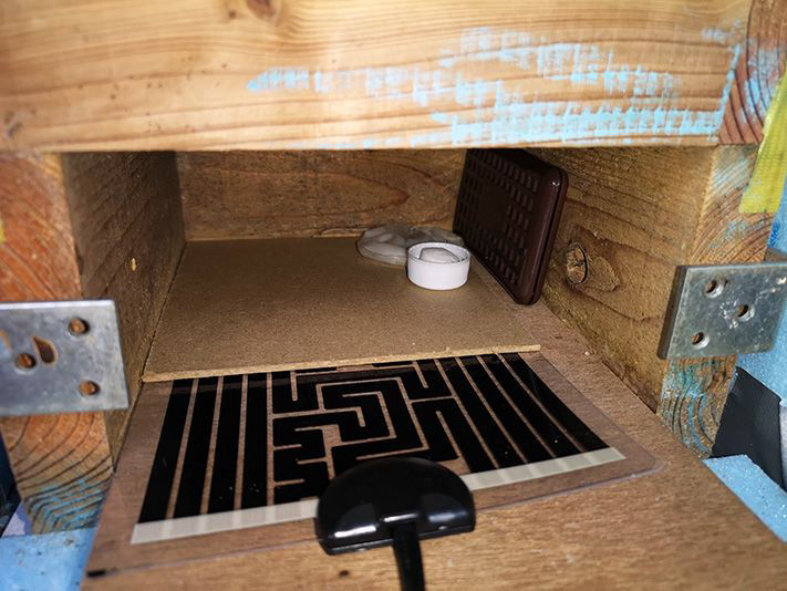 ❶ 箱上部または ”巣板下の直近” で給餌する。箱底での給餌は巣板から遠過ぎ、餌を食べた蜂は低温時に上へ登れず死にます。給餌中は給餌の器下にカイロを敷いて保温が必要です。カイロ保温が無ければ給餌を食べません。