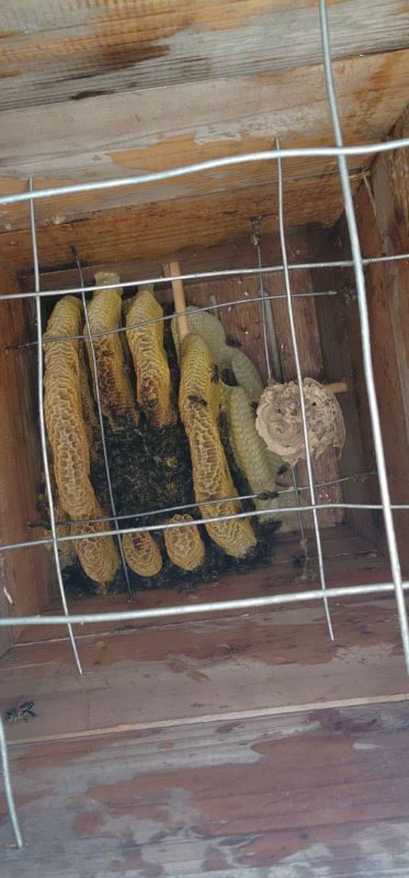 えりちんさん スズメバチの場合は蜂さんを丸めて自分の巣に持ち帰ってしまうので一概にスズメバチと判断は出来ません。 それと保温対策は段ボールは止めた方が良いと思います。冬でも雨降りますから濡れた段ボールを巣箱に貼り付ける事になります。プチプチのビニールは論外です。 巣箱を空気の換気が有る様に工夫される事をお勧めします。 私は巣箱厚みが30~35なので防寒はほぼ何もしません北側の冬の風が当たる部分のみコンパネ等を巣箱に隙間開けて取り付けています。 ビニール等は確かに防寒効果有りますが暖かい日に巣箱内の温度が上がりすぎてミツバチさんが活動してしまい貯蜜の消費が進んだり寒いのに外も暖かいと勘違いして巣箱外に出て寒冷麻痺で戻れなくなったり良い事有りません。お気を付けくださいませm(__)m 日本みつばちさんは寒さに強い生き物でーすm(__)m