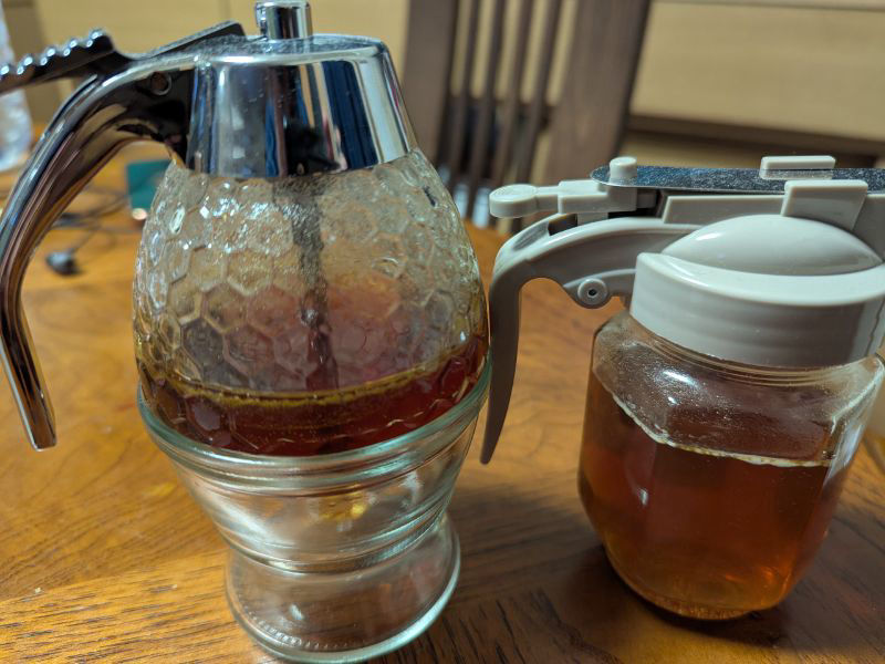 ハニーディスペンサーはいくつもありますが、それぞれ巣箱を置いてる場所が違って蜂蜜の味も風味も違うので、その時の気分によって食べ分ける為です( ´•ᴗ•ก )