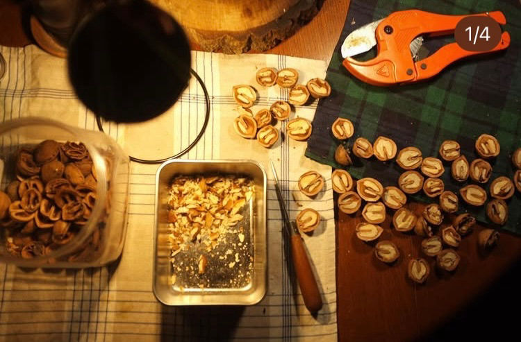 コメントありがとうございます。 3種類道具を用意しましたが色々試したら蜜切りの時に使うスクレーパーが 一番役に立ちました(笑) 今日は二人で朝から夕方までかけてくるみ割りしました。 水に漬けなくても大丈夫なんですねーー(笑) 最初の物は1晩、次から2時間水に漬けてからフライパンで煎りました(笑) 余分でしたね(笑) ご指導ありがとうございます。m(__)m 全部剥いてしまったので来年は水に漬けずにやってみますありがとうございます。m(__)m