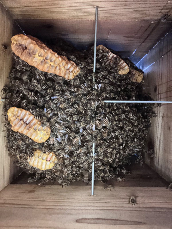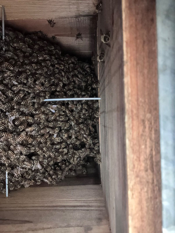 待ち箱をはじめて設置した2023年の春に入居した群が夏に猛暑で逃去。2024年は入居なく、2025年現在は2群入居して、夏を乗り越えてくれて見守っています。