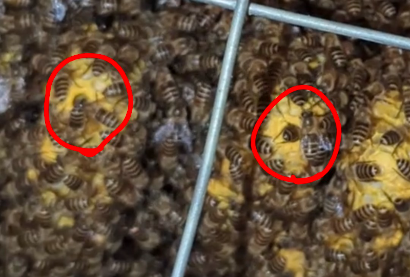 なるほど!巣脾の周辺部分では下向きになる巣房もあるのですね(´>∀<`)ゝ 素人ながらに下向き=王台と判断してました( ;´•ᴗ•ก )