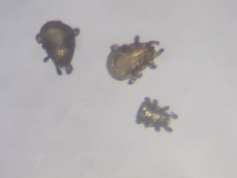 スムシの糞を餌にしているダニかも知れません。上部にスムシが居ない事を確認した方が良さそうです。