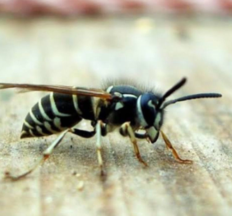 千葉県、消滅した丸洞に黒い縞の入った蜂がきています。