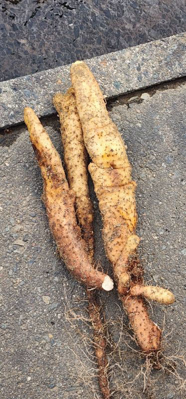 こちらの山にあるのは写真のようなので、ナガイモが逃げ出したものと思われるのは縦横が同じくらいの長さなので見分けるのは難しくはないのですが・・・・・・・