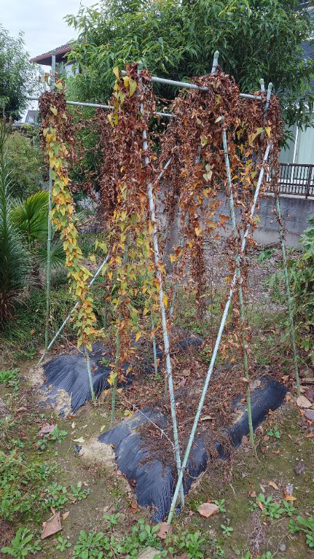 つよよさん コメントありがとうございます。 細かにありがとうございます。 貴兄の御宅のは大分枯れてきていますね。 我が家のはご指摘どうりだとまだまだですね。 肥料は何も与えませんでした(笑) 真砂土が良いと聞きましたので真砂土を植え土に使っただけです(笑) 貴兄の栽培の短径に興味津々です来期は短径を是非作ってみます。 消毒もしないで育ってくれる物は蜂の飼育場に最適ですね(笑) これからも又教えてくださいませm(__)m ご指導ありがとうございました。m(__)m