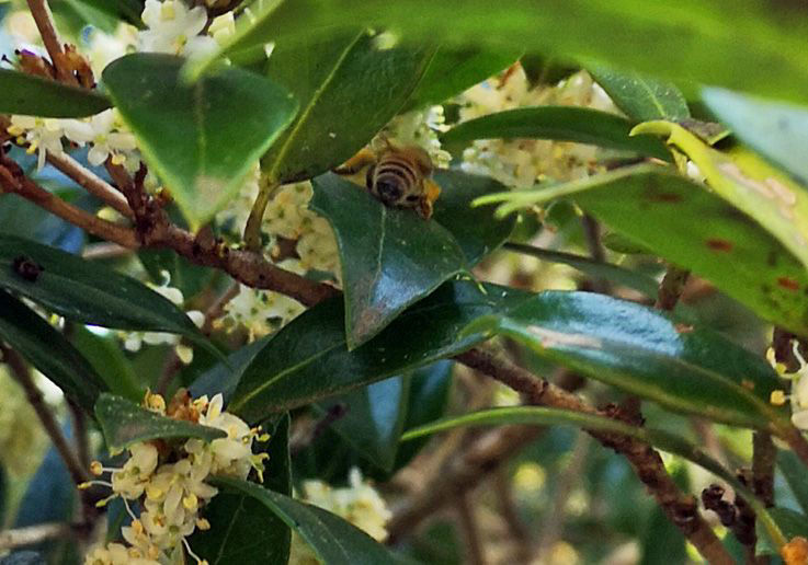 新しく庭の生垣用に植える植物として、ヒイラギモクセイ(ヒイラギとギンモクセイの配合種)を検討しています。日本ミツバチを飼っているため、蜜源植物を植えられたらと思うのですが、ヒイラギモクセイに日本ミツバチが訪花している場面を実際に確認された方がいれば是非お話をお聞かせください。