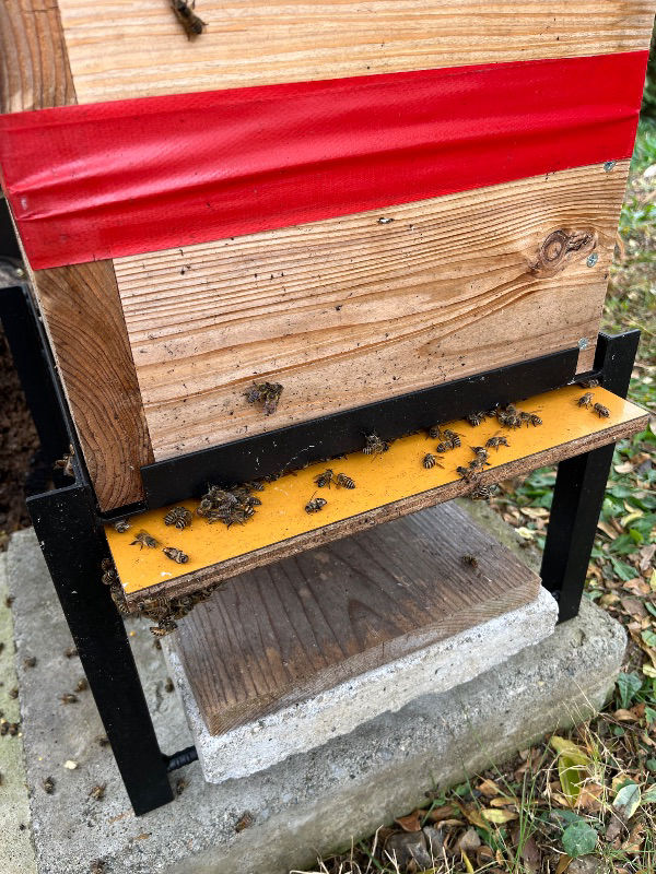 また、内部の写真などが無いので良く分りませんが、盗蜂による逃居となった蜂球を疑います。