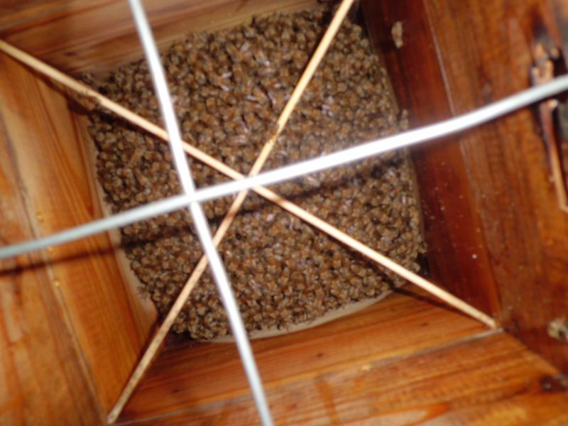 翌年も西洋蜜蜂が自然入居しましたが、ヘギイタダニ対策不備で2年目に倒れてしまいました