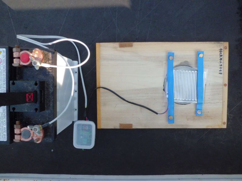 ↓AC100Vの電源が無い蜂場ではDC12Vバッテリーを使用しています。