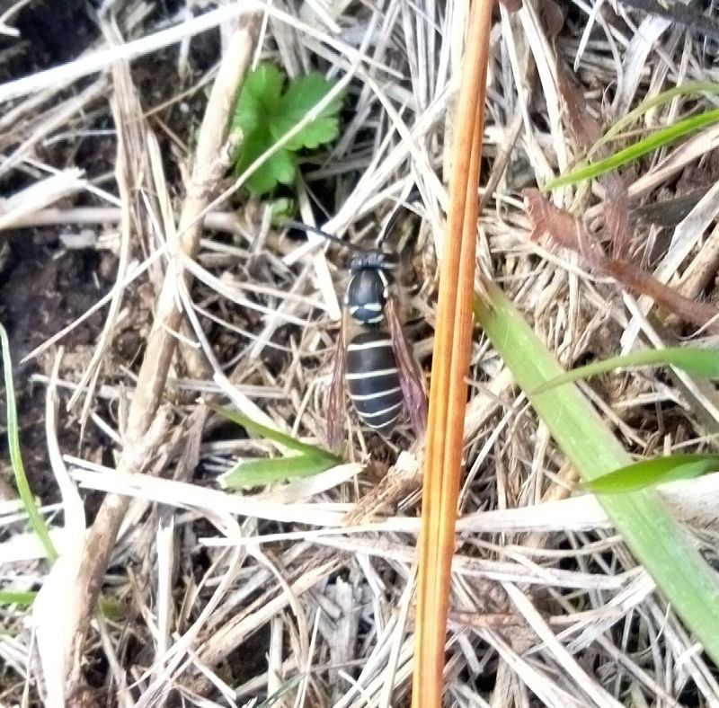 初心者おじさんさん とんぼさんの回答コメントの通り、クロスズメバチですね。お疲れ様でした。