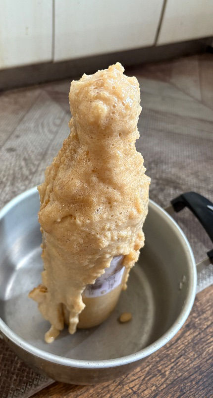 頂いたハチミツが発酵したとき、こんな状態になることも知らず食べられるとも思はずに処分してしまったのが惜しかった