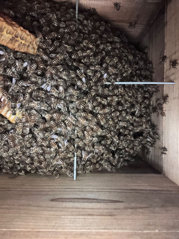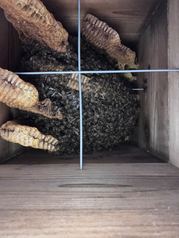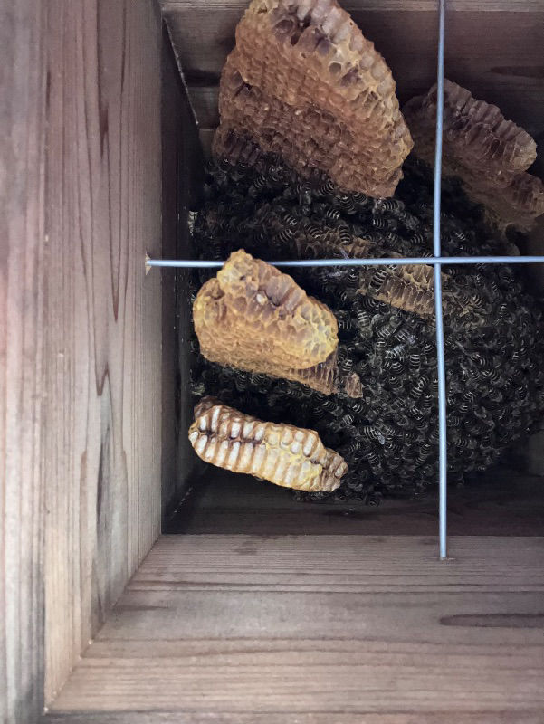 待ち箱をはじめて設置した2023年の春に入居した群が夏に猛暑で逃去。2024年は入居なく、2025年現在は2群入居して、夏を乗り越えてくれて見守っています。