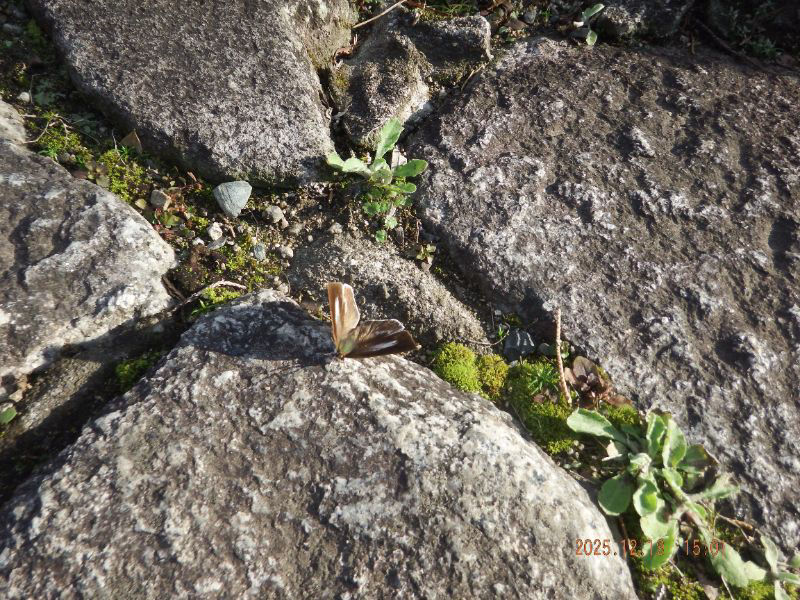 見にくいですが、イソシバ(ハマヒサカキ)を剪定中に飛んで来たこの蝶々は何というのですかね。