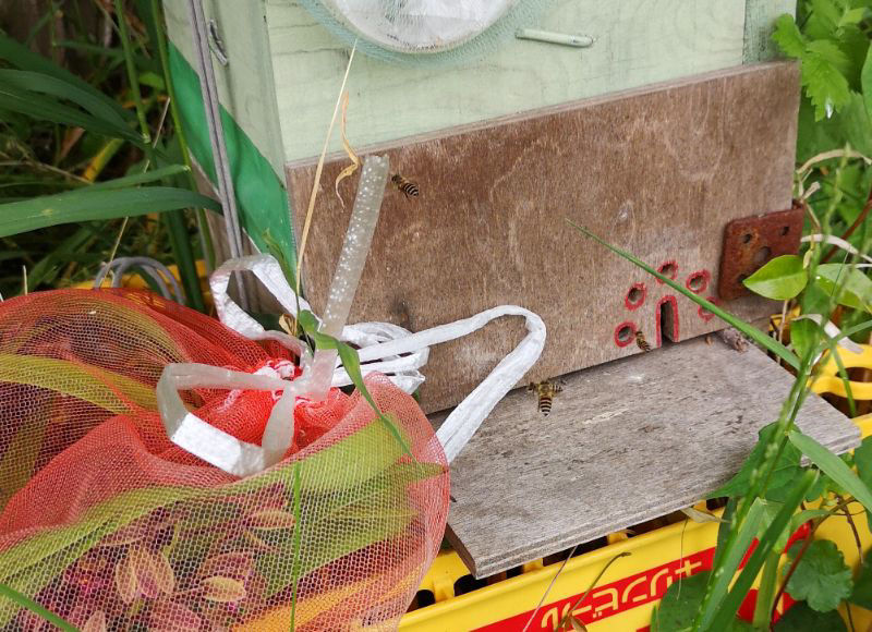 昨年の春にやっと日本ミツバチが巣箱に入居してくれました。 まだまだ勉強中です。