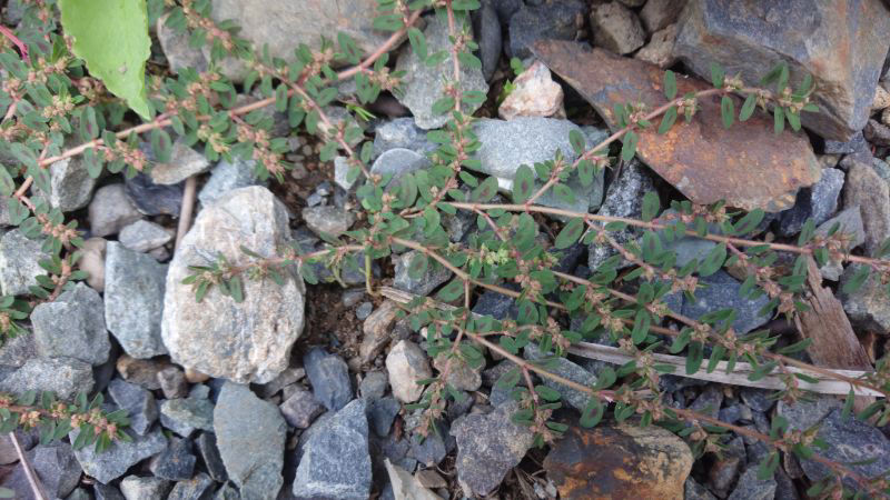 野良ミツバチさん 明けましておめでとうございます。此れは、コニシキソウと思いますね。最初は薬草に使用されていると、書き込んでいましたが、今は乳汁の毒性の方が強いので、余り薬草としては使用されていないそうですが、薬草の第一人者とかに掛かれば、薬草になるかもですね。自宅蜜源樹の森:には一面に生えていますね。